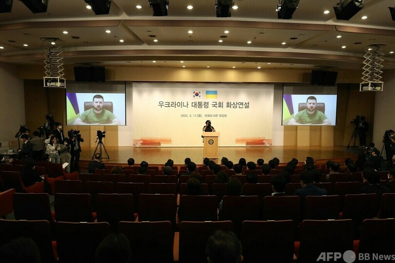 【4月12日 AFP】ウクライナのウォロディミル・ゼレンスキー(Volodymyr Zelensky)大統領は11日、韓国国会でビデオ演説し、ロシア軍が包囲する南東部の港湾都市マリウポリ(Mariupol)で「数万人」が殺害されたとの見方を示し、韓国に軍事支援を求めた。
