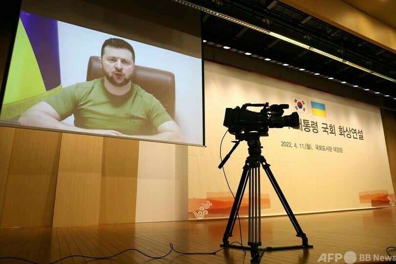 【4月12日 AFP】ウクライナのウォロディミル・ゼレンスキー(Volodymyr Zelensky)大統領は11日、韓国国会でビデオ演説し、ロシア軍が包囲する南東部の港湾都市マリウポリ(Mariupol)で「数万人」が殺害されたとの見方を示し、韓国に軍事支援を求めた。