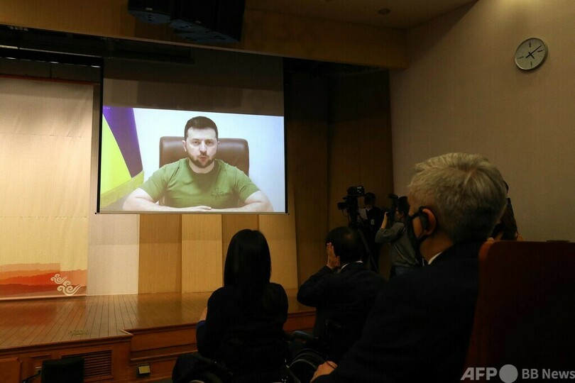 【4月12日 AFP】ウクライナのウォロディミル・ゼレンスキー(Volodymyr Zelensky)大統領は11日、韓国国会でビデオ演説し、ロシア軍が包囲する南東部の港湾都市マリウポリ(Mariupol)で「数万人」が殺害されたとの見方を示し、韓国に軍事支援を求めた。