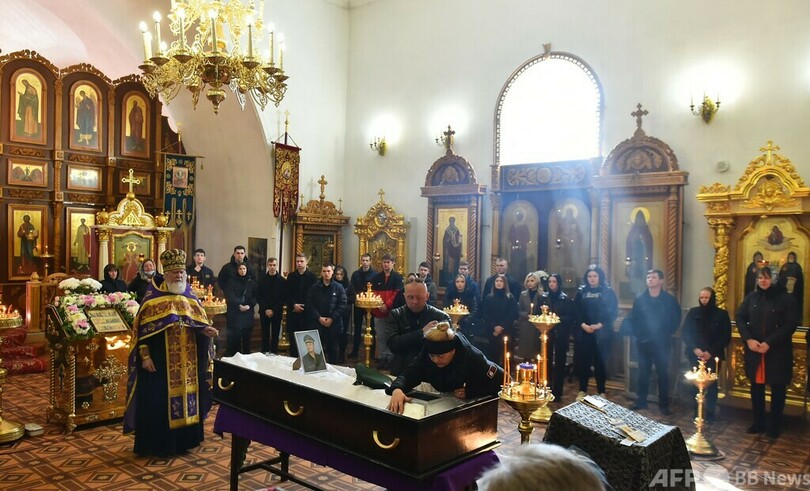 ロシア第2の都市サンクトペテルブルク(St. Petersburg)南方150キロに位置する故郷ルーガ(Luga)で今月行われた葬儀では、死亡叙勲が行われたアブロフさんを誰もが愛国的な殉教者とたたえ、大義のため、祖国ロシアのために命を落としたと異口同音に語った。