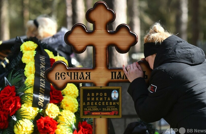 ウクライナで戦死したロシア人兵士の正確な数は明らかにされていないが、ロシア政府報道官は8日、「かなりの」数に上ることを認めた。3月25日の公式発表では、ロシア軍の死者は1351人とされていた。(c)AFP