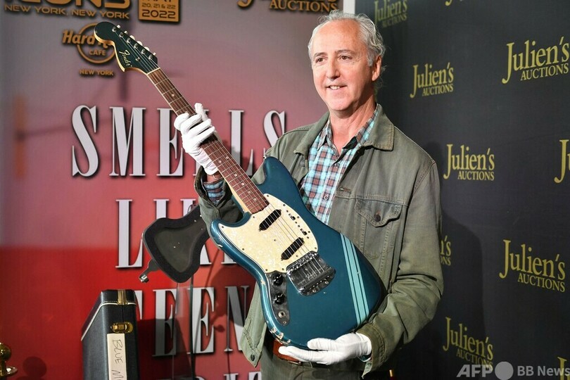 【4月16日 AFP】米グランジロックバンド「ニルヴァーナ(Nirvana)」の故カート・コバーン(Kurt Cobain)さんが1991年の「Smells Like Teen Spirit」のミュージックビデオで使用した青いギターが来月競売にかけられる。カリフォルニア州ビバリーヒルズ(Beverly Hills)で11日、競売会社ジュリアンズ・オークションズ(Julien's Auctions)がメディア向け内覧会で公開した。