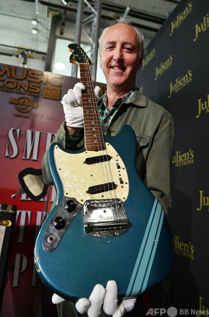 【4月16日 AFP】米グランジロックバンド「ニルヴァーナ(Nirvana)」の故カート・コバーン(Kurt Cobain)さんが1991年の「Smells Like Teen Spirit」のミュージックビデオで使用した青いギターが来月競売にかけられる。カリフォルニア州ビバリーヒルズ(Beverly Hills)で11日、競売会社ジュリアンズ・オークションズ(Julien's Auctions)がメディア向け内覧会で公開した。