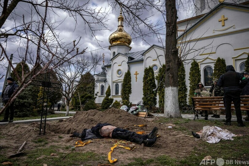 「戦争犯罪」捜査で町長らの遺体掘り出し ウクライナ・ホストーメリ