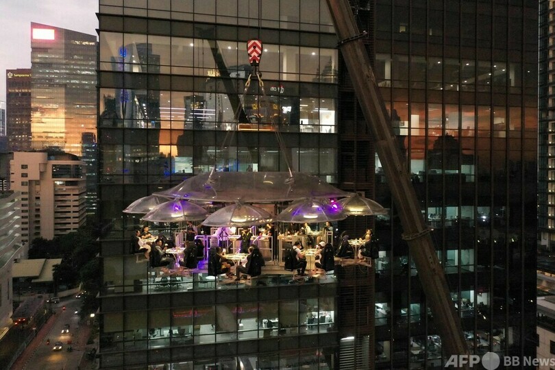 ニュース ライフ 今日の1枚 【今日の1枚】天上人のディナー? 空中レストランで景色も堪能 2022年4月17日 12:15 発信地:ジャカルタ/インドネシア [ インドネシア アジア・オセアニア ] このニュースをシェア ‹ › ❮ 1/4 ❯ インドネシア・ジャカルタで、地上約50メートルの高さにある「ラウンジ・イン・ザ・スカイ」で食事を楽しむ客を捉えた空撮写真(2022年4月6日撮影)。(c)ADEK BERRY / AFP 画像作成中 ! 【4月17日 AFP】インドネシア・ジャカルタで、クレーンで高くつり上げられた「ラウンジ・イン・ザ・スカイ(Lounge in the Sky)」で食事を楽しむ客を捉えた空撮写真。(c)AFP ライフ 一覧へ> メディア・報道関係・法人の方向け 写真・動画 購入のお問合せ>