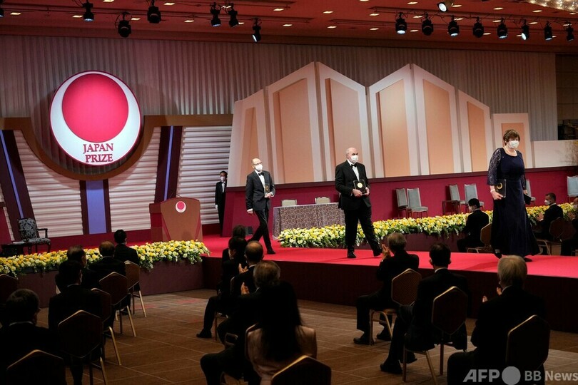 科学技術分野で功績のあった研究者に贈られる同賞の授賞式は、新型コロナウイルス流行の影響で3年ぶり。2020年、2021年、2022年の式がまとめて行われた。(c)AFP