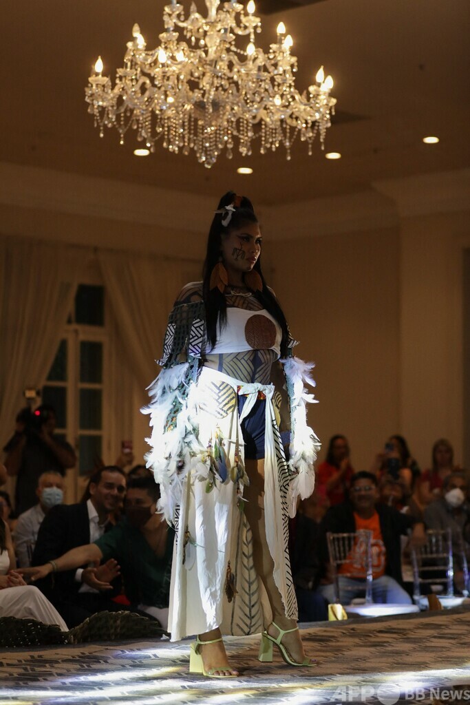 モデルを務めるモアン・ムンドゥルク(Moan Munduruku)さん(19)は、「私たちの縫製や工芸の才能をぜひ見てもらいたいです。先住民も(ファッションの世界で)成功できることを世界中に示したいのです」と語った。
