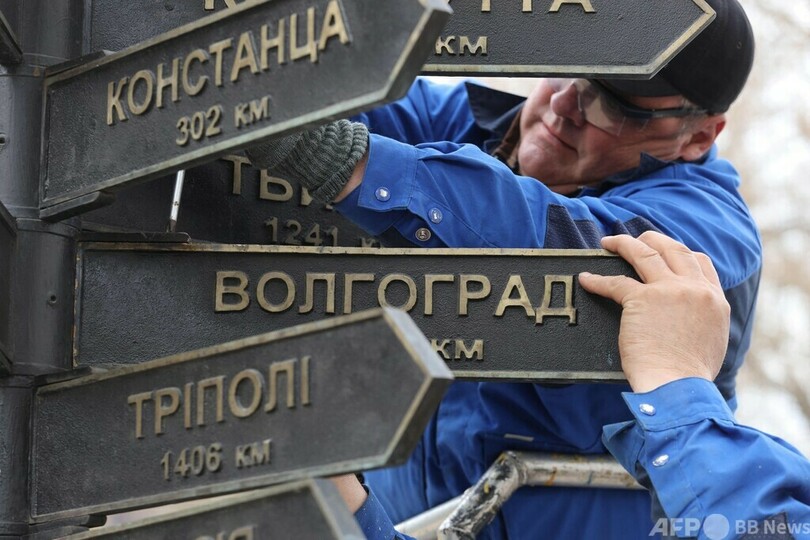 ニュース 戦争・紛争 ウクライナ危機 姉妹都市の標識、ロシアを撤去 ウクライナ・オデーサ 2022年4月15日 11:58 発信地:オデーサ/ウクライナ [ ウクライナ ロシア ロシア・CIS ] このニュースをシェア ‹ › ❮ 2/4 ❯ ウクライナ南部の港湾都市オデーサで、姉妹都市の標識からロシアの都市を撤去する自治体職員(2022年4月14日撮影)。(c)Oleksandr GIMANOV / AFP 画像作成中 ! 【4月14日 AFP】ウクライナ南部の港湾都市オデーサ(Odessa)の中心部で14日、姉妹都市までの距離と方角を表す標識からロシアの都市を撤去する作業が行われた。(c)AFP 特集:ウクライナ危機 ロシアがウクライナに侵攻、世界は東西冷戦終結後最大の危機に直面している。 戦争・紛争 一覧へ> メディア・報道関係・法人の方向け 写真・動画 購入のお問合せ>