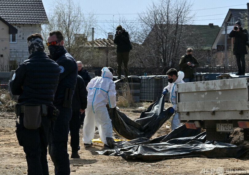 ウクライナ検察のルスラン・クラウチェンコ(Ruslan Kravchenko)氏は、フランスの捜査官が活動している集団埋葬地では、「70人の遺体が見つかった。大半が民間人だが、警官1人、兵士2人の遺体もあった」と話した。