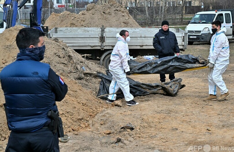 ウクライナ検察のルスラン・クラウチェンコ(Ruslan Kravchenko)氏は、フランスの捜査官が活動している集団埋葬地では、「70人の遺体が見つかった。大半が民間人だが、警官1人、兵士2人の遺体もあった」と話した。