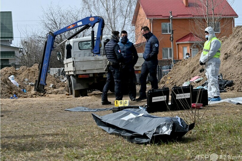 ウクライナ検察のルスラン・クラウチェンコ(Ruslan Kravchenko)氏は、フランスの捜査官が活動している集団埋葬地では、「70人の遺体が見つかった。大半が民間人だが、警官1人、兵士2人の遺体もあった」と話した。