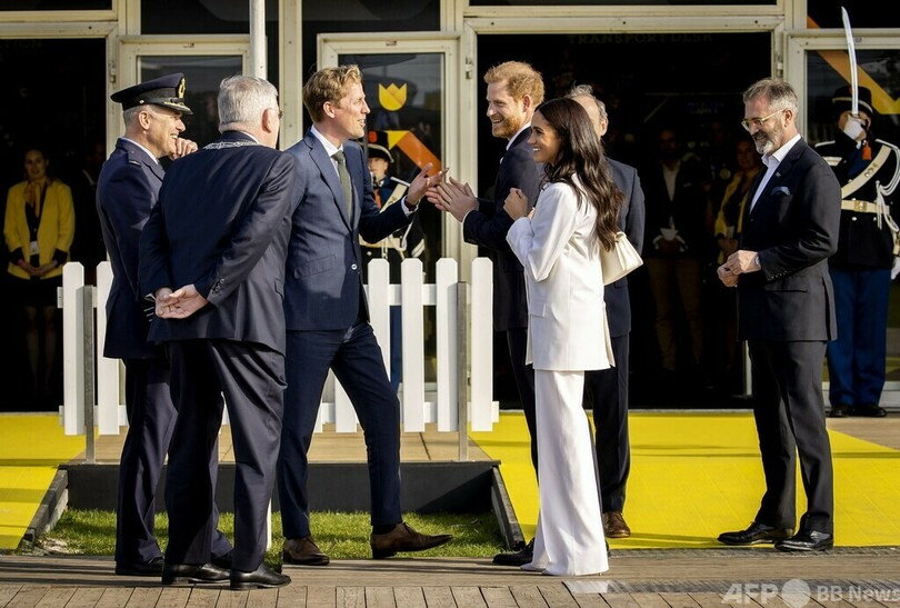 【4月16日 AFP】英王室を離脱して北米に移住したヘンリー王子(Prince Harry、37)と妻メーガン妃(Meghan, Duchess of Sussex、40)は15日、オランダ・ハーグ(Hague)で公の場に姿を見せた。夫妻そろって欧州を訪問するのは2年ぶりで、王室離脱後初めて。