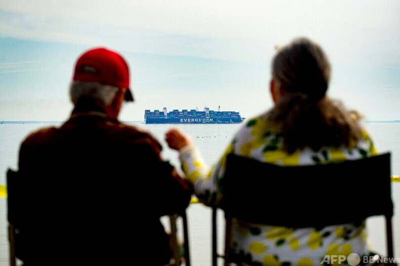 コンテナ船は、台湾の海運会社エバーグリーン(Evergreen)が運航する「エバーフォワード(Ever Forward)」(全長335メートル)。先月13日夜、沖へ向けて航行中に岸から数百メートルの湾内で座礁した。