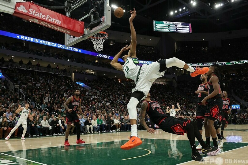 バックスはレギュラーシーズン最優秀選手(MVP)の候補に選ばれたヤニス・アデトクンポ(Giannis Antetokounmpo)が27得点、16リバウンドでチームをけん引し、93-86でシカゴ・ブルズ(Chicago Bulls)に勝利した。