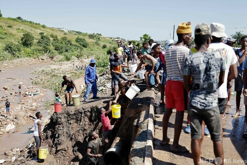 ダーバンを含むエテクウィニ(eThekwini)都市圏の大半の地区では、電気も水もない状態が続いている。自治体当局は市内の80%が断水に直面していると推定しており、水の確保に苦慮している。給水車が予告なしにやってきて、住民の間で水の奪い合いも起きているという。