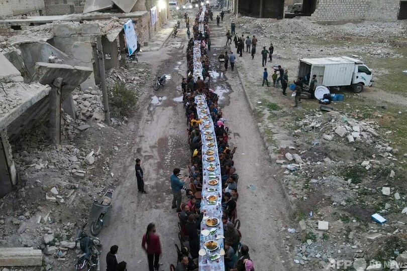 ニュース ライフ 廃虚でラマダン日没後の食事 シリア 2022年4月19日 12:26 発信地:タデフ/シリア [ シリア 中東・北アフリカ ] このニュースをシェア ‹ › ❮ 2/10 ❯ 廃虚に机を並べ、イスラム教の断食月「ラマダン」の日没後の食事を共にとる住民。シリア・アレッポ県東部アルバブ近郊のタデフで(2022年4月18日撮影)。(c)Bakr ALKASEM / AFP 画像作成中 ! 【4月19日 AFP】イスラム教の断食月「ラマダン(Ramadan)」を迎えているシリア・アレッポ(Aleppo)県東部タデフ(Tadef)では、住民が廃虚に集まって、日没後の食事「イフタール(Iftar)」を共にしている。(c)AFP ライフ 一覧へ> メディア・報道関係・法人の方向け 写真・動画 購入のお問合せ>