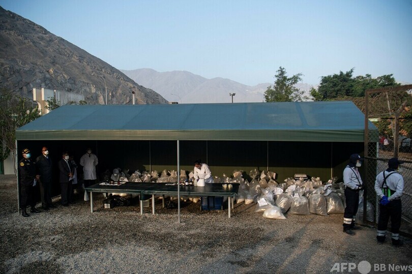 【4月20日 AFP】ペルーの首都リマの警察は18日、過去4か月に押収した、16.3トン以上のコカインなど違法薬物の焼却処分を開始した。ペドロ・カスティジョ(Pedro Castillo)大統領も立ち合った。(c)AFP