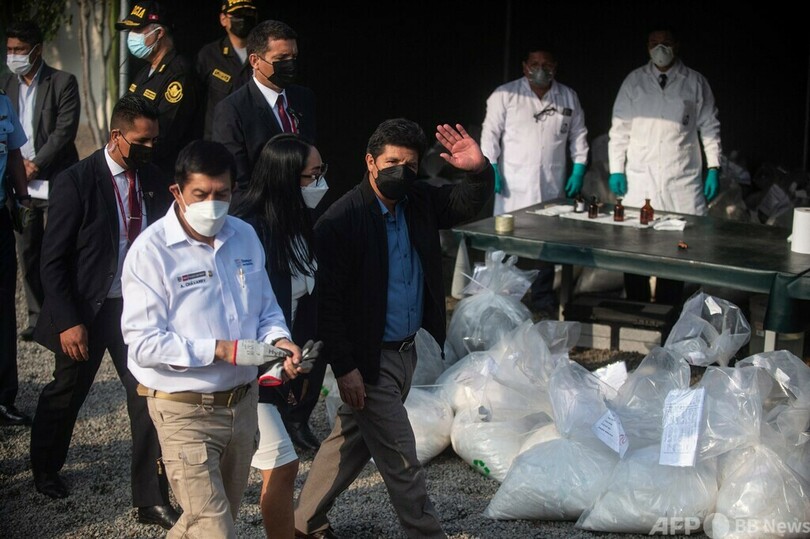 【4月20日 AFP】ペルーの首都リマの警察は18日、過去4か月に押収した、16.3トン以上のコカインなど違法薬物の焼却処分を開始した。ペドロ・カスティジョ(Pedro Castillo)大統領も立ち合った。(c)AFP