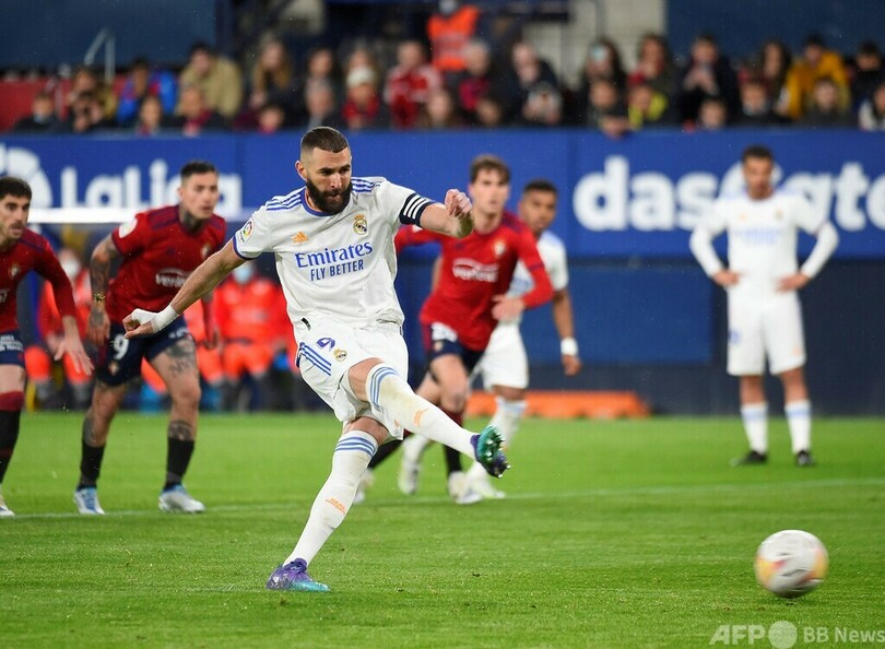 【4月21日 AFP】21-22スペイン1部リーグは20日、第33節の試合が行われ、首位レアル・マドリード(Real Madrid)はカリム・ベンゼマ(Karim Benzema)が7分間にPKを2本失敗したものの3-1でオサスナ(CA Osasuna)を下し、リーグ制覇に前進した。