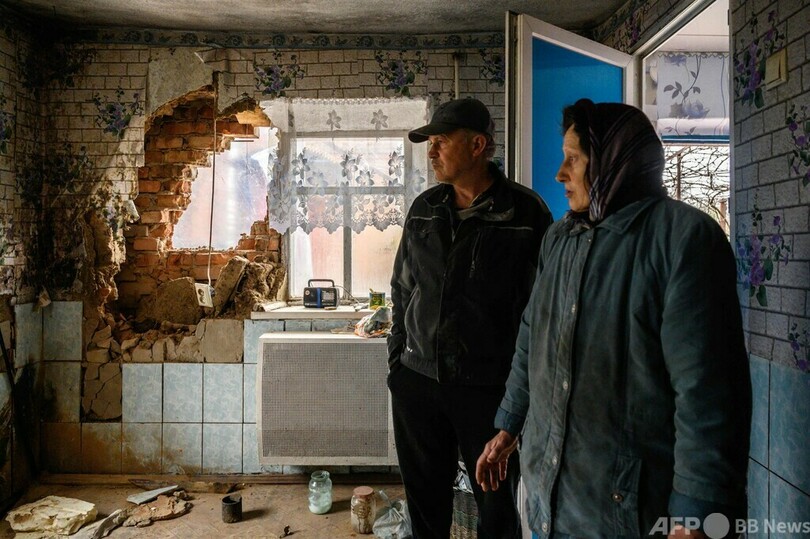 【4月22日 AFP】ウクライナ南部ザポリージャ(Zaporizhzhia)の南東約60キロに位置するマラトクマチカ(Mala Tokmachka)村。ターニャ・ロス(Tanya Los)さん(59)の自宅の台所に17日、ロシア軍のロケット弾が直撃した。ロスさんは食器を洗っているところで、横には娘のアナスタシアさん(24)がいた。
