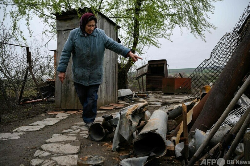【4月22日 AFP】ウクライナ南部ザポリージャ(Zaporizhzhia)の南東約60キロに位置するマラトクマチカ(Mala Tokmachka)村。ターニャ・ロス(Tanya Los)さん(59)の自宅の台所に17日、ロシア軍のロケット弾が直撃した。ロスさんは食器を洗っているところで、横には娘のアナスタシアさん(24)がいた。