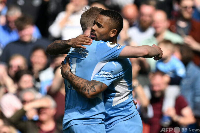 【4月24日 AFP】21-22イングランド・プレミアリーグは23日、第34節の試合が行われ、首位マンチェスター・シティ(Manchester City)はガブリエウ・ジェズス(Gabriel Jesus)の4得点などでワトフォード(Watford FC)を5-1で下し、2位との勝ち点差を暫定で4とした。