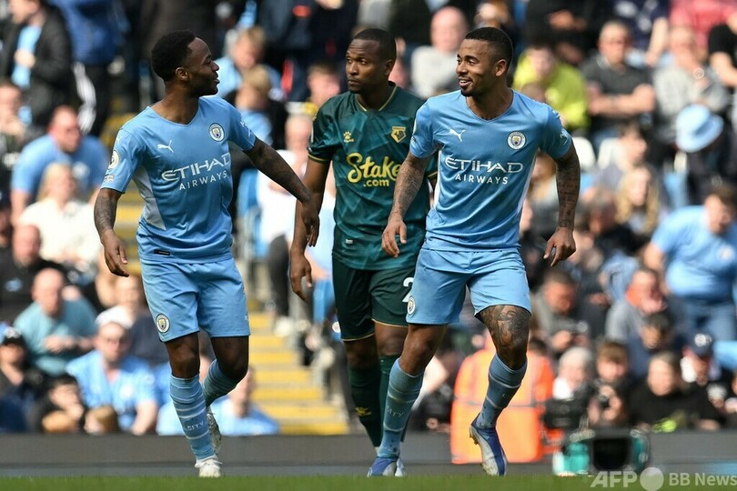 【4月24日 AFP】21-22イングランド・プレミアリーグは23日、第34節の試合が行われ、首位マンチェスター・シティ(Manchester City)はガブリエウ・ジェズス(Gabriel Jesus)の4得点などでワトフォード(Watford FC)を5-1で下し、2位との勝ち点差を暫定で4とした。