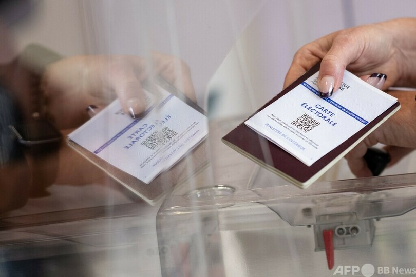 仏テレビ各局は、世論調査会社が票の一部に基づき予測した各候補の得票結果を報道。得票率はマクロン氏が57.0~58.5%、ルペン氏が41.5~43.0%となる見通し。