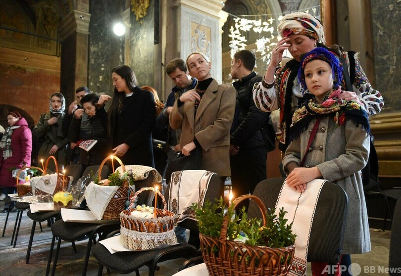 ニュース ライフ ウクライナ危機 ウクライナ各地で復活祭 兵士や住民が祈り 2022年4月25日 15:16 発信地:キーウ/ウクライナ [ ウクライナ ロシア・CIS ] このニュースをシェア ‹ › ❮ 28/31 ❯ ウクライナ西部リビウで東方正教会のイースター(復活祭)を祝う行事に参列した人々(2022年4月23日撮影)。(c)Yuriy Dyachyshyn / AFP 画像作成中 ! 【4月25日 AFP】ウクライナは24日、キリスト教東方正教会のイースター(Easter、復活祭)を迎えた。各地で復活祭を祝う行事が行われ、地元住民や兵士が参列して祈りをささげた。 東部リマン(Lyman)では遠くから砲撃音が聞こえる中、教会に集まった市民が司祭から祝福を受けた。(c)AFP 特集:ウクライナ危機 ロシアがウクライナに侵攻、世界は東西冷戦終結後最大の危機に直面している。 ライフ 一覧へ> メディア・報道関係・法人の方向け 写真・動画 購入のお問合せ>