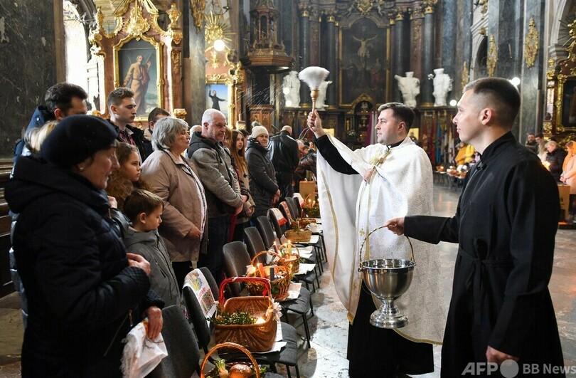 ニュース ライフ ウクライナ危機 ウクライナ各地で復活祭 兵士や住民が祈り 2022年4月25日 15:16 発信地:キーウ/ウクライナ [ ウクライナ ロシア・CIS ] このニュースをシェア ‹ › ❮ 24/31 ❯ ウクライナ西部リビウでイースター(復活祭)を祝い、信者に祝福を授ける東方正教会の司祭(中央、2022年4月23日撮影)。(c)Yuriy Dyachyshyn / AFP 画像作成中 ! 【4月25日 AFP】ウクライナは24日、キリスト教東方正教会のイースター(Easter、復活祭)を迎えた。各地で復活祭を祝う行事が行われ、地元住民や兵士が参列して祈りをささげた。 東部リマン(Lyman)では遠くから砲撃音が聞こえる中、教会に集まった市民が司祭から祝福を受けた。(c)AFP 特集:ウクライナ危機 ロシアがウクライナに侵攻、世界は東西冷戦終結後最大の危機に直面している。 ライフ 一覧へ> メディア・報道関係・法人の方向け 写真・動画 購入のお問合せ>