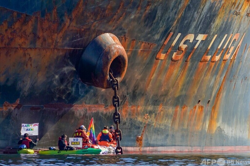 【4月26日 AFP】ノルウェー南東部オースゴールストラン(Aasgaardstrand)の港で25日、国際環境NGOグリーンピース・インターナショナル(Greenpeace International)の活動家が、ロシア産原油を積んでいるとみられる船舶「ウストルガ(Ust Luga)」に接近し、積み降ろしを妨害した。