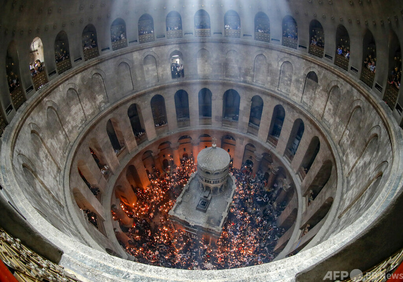 【今日の1枚】キリストの墓で「聖なる火」の奇跡 エルサレム