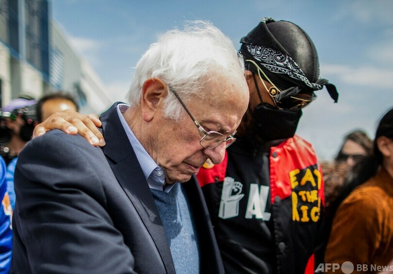 民主党のバーニー・サンダース(Bernie Sanders)上院議員とアレクサンドリア・オカシオコルテス(Alexandria Ocasio-Cortez)下院議員も、デモの現場を訪れてデモ参加者を激励した。(c)AFP