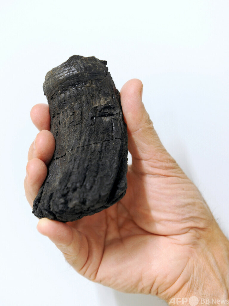 今回、魚竜の中で最大とされた歯について、ザンダー教授は「魚竜の基準からすると巨大だ。根元の直径は60ミリある。これまで見つかった、完全な骨格が残っている個体で最大の歯は直径20ミリだった」と述べた。(c)AFP