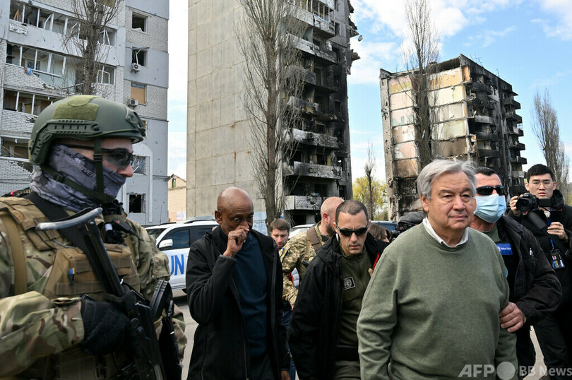 国連事務総長、ウクライナ訪問 首都近郊を視察