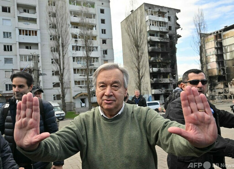 国連事務総長、ウクライナ訪問 首都近郊を視察