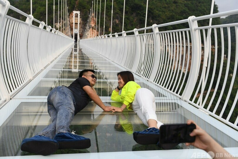 橋の運営会社は、中国・広東(Guangdong)省にある526メートルの橋を上回り、世界最長のガラス橋だとしている。来月、ギネス世界記録(Guinness World Records)の認定審査を受ける予定。(c)AFP