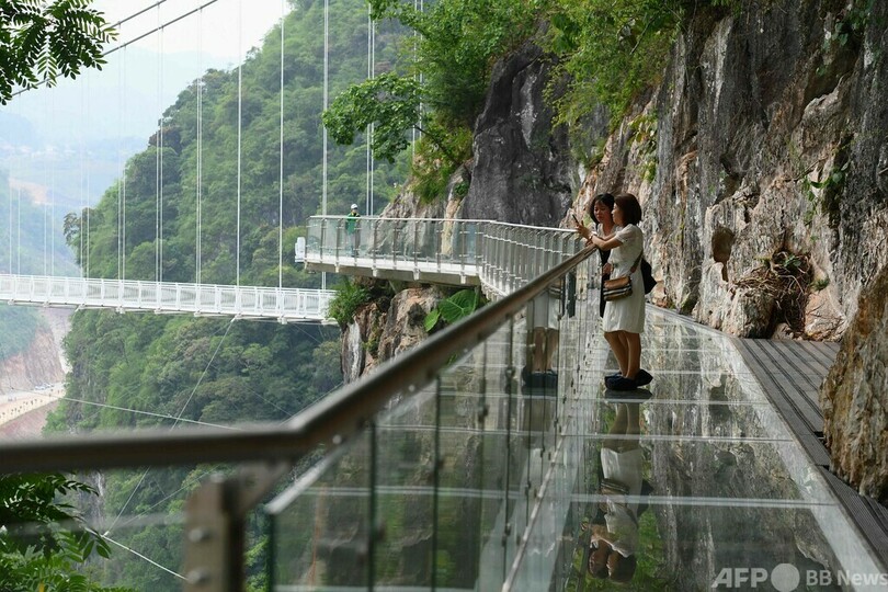 【4月30日 AFP】ベトナム北西部ソンラ(Son La)省で29日、床がガラス張りになった全長632メートルのつり橋が開通した。