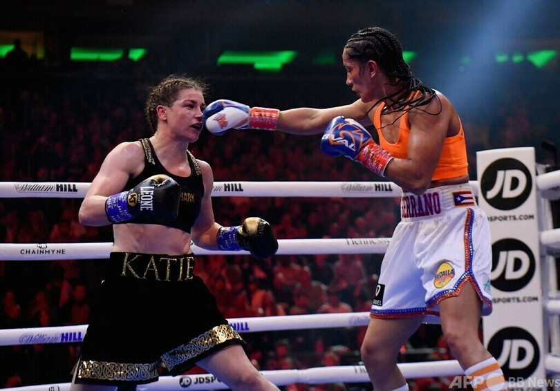 【5月1日 AFP】女子ボクシング世界ライト級タイトルマッチが30日、米ニューヨークのマディソン・スクエア・ガーデン(Madison Square Garden)で史上初めてメインイベントとして行われ、統一王者ケイティ・テイラー(Katie Taylor、アイルランド)が判定の末2-1(94-96、97-93、96-93)で挑戦者のアマンダ・セラーノ(Amanda Serrano、プエルトリコ)を退け、王座防衛に成功した。