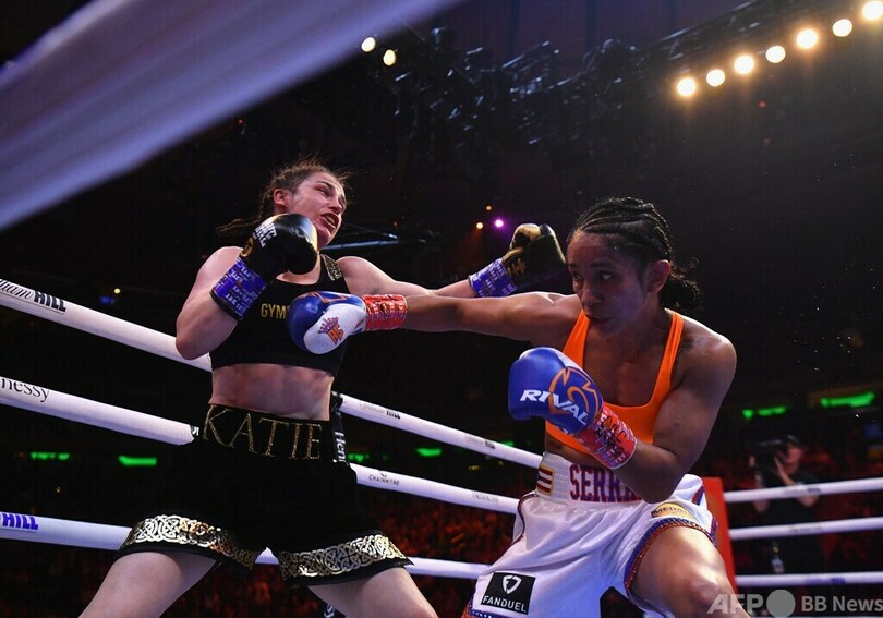 【5月1日 AFP】女子ボクシング世界ライト級タイトルマッチが30日、米ニューヨークのマディソン・スクエア・ガーデン(Madison Square Garden)で史上初めてメインイベントとして行われ、統一王者ケイティ・テイラー(Katie Taylor、アイルランド)が判定の末2-1(94-96、97-93、96-93)で挑戦者のアマンダ・セラーノ(Amanda Serrano、プエルトリコ)を退け、王座防衛に成功した。