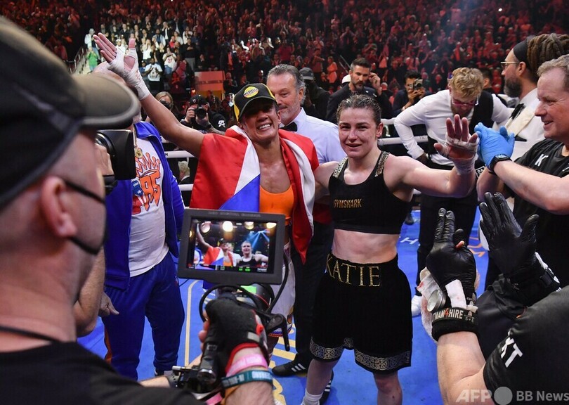 【5月1日 AFP】女子ボクシング世界ライト級タイトルマッチが30日、米ニューヨークのマディソン・スクエア・ガーデン(Madison Square Garden)で史上初めてメインイベントとして行われ、統一王者ケイティ・テイラー(Katie Taylor、アイルランド)が判定の末2-1(94-96、97-93、96-93)で挑戦者のアマンダ・セラーノ(Amanda Serrano、プエルトリコ)を退け、王座防衛に成功した。