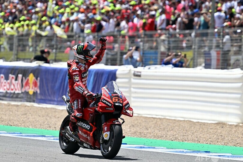 昨季はクアルタラロに次ぐ総合2位に入ったバニャイアだが、今季はここまで5位が最高。それでもこの日はスタートで飛び出すと、そのまま逃げ切りを果たした。