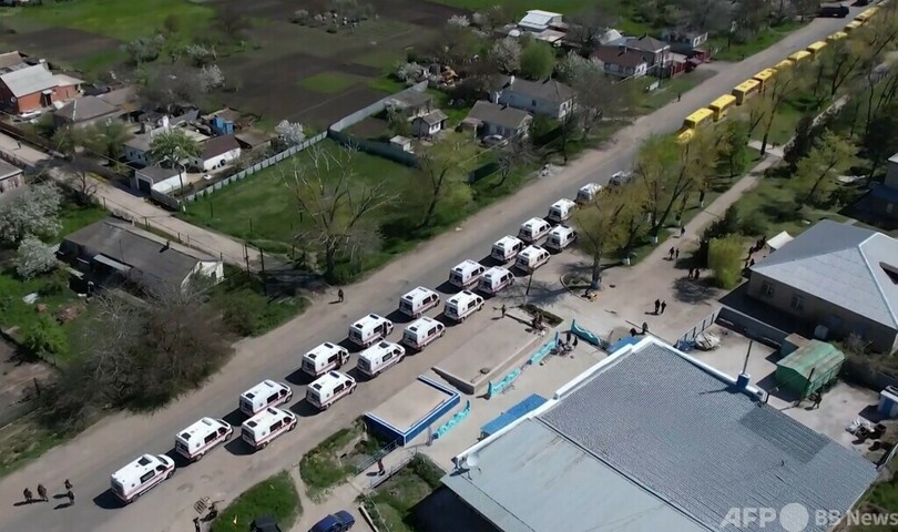【5月3日 AFP】ロシア国防省は2日、ウクライナ南東部の港湾都市マリウポリ(Mariupol)のアゾフスターリ(Azovstal)製鉄所付近から避難する市民を乗せたバスの映像を公開した。東部ベジメンネ(Bezimennoe)に定住するという。