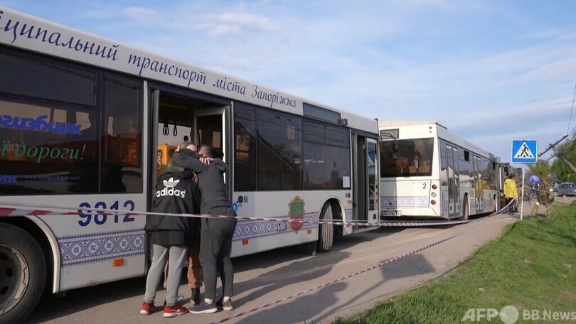 【5月3日 AFP】ロシア国防省は2日、ウクライナ南東部の港湾都市マリウポリ(Mariupol)のアゾフスターリ(Azovstal)製鉄所付近から避難する市民を乗せたバスの映像を公開した。東部ベジメンネ(Bezimennoe)に定住するという。