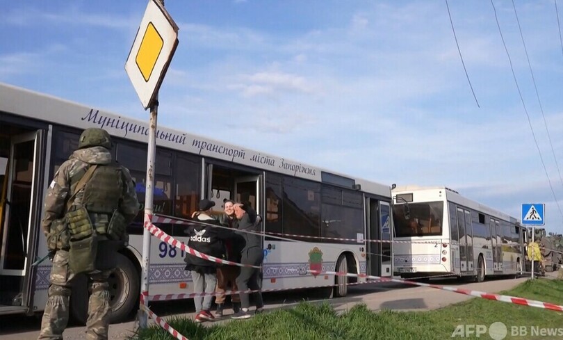 【5月3日 AFP】ロシア国防省は2日、ウクライナ南東部の港湾都市マリウポリ(Mariupol)のアゾフスターリ(Azovstal)製鉄所付近から避難する市民を乗せたバスの映像を公開した。東部ベジメンネ(Bezimennoe)に定住するという。