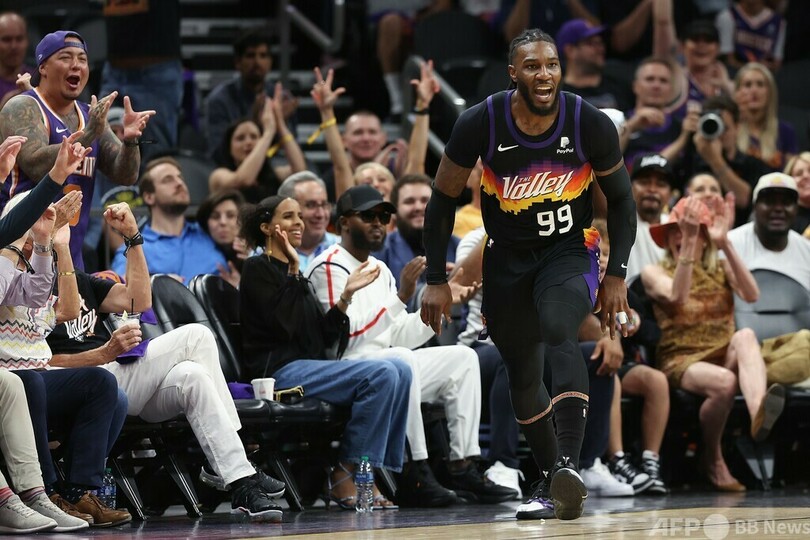 ウエスト第1シードのサンズは、ディアンドレ・エイトン(Deandre Ayton)が20本中12本のフィールドゴール(FG)を決めるなど25得点を記録。デビン・ブッカー(Devin Booker)も23得点、9リバウンド、8アシストをマークしてチームをけん引した。