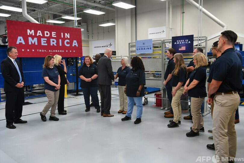 バイデン氏は作業員約300人の前で演説し、「あなた方が触れたこれらの兵器は、ウクライナの英雄の手に渡り、大きな戦果を挙げている」として、西側諸国からウクライナへの兵器供与を支えていることを「誇り」に思うべきだと称賛した。同工場は過去20年間にジャベリン5万基以上を製造した。