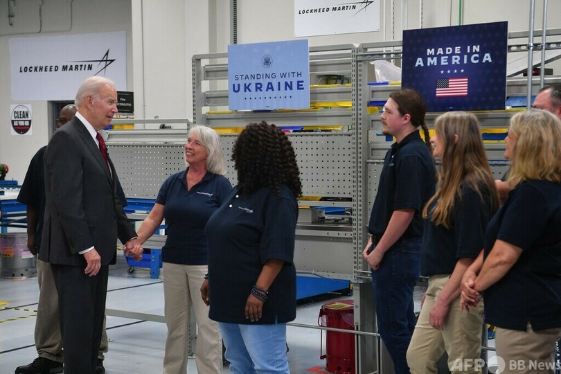 バイデン氏は作業員約300人の前で演説し、「あなた方が触れたこれらの兵器は、ウクライナの英雄の手に渡り、大きな戦果を挙げている」として、西側諸国からウクライナへの兵器供与を支えていることを「誇り」に思うべきだと称賛した。同工場は過去20年間にジャベリン5万基以上を製造した。