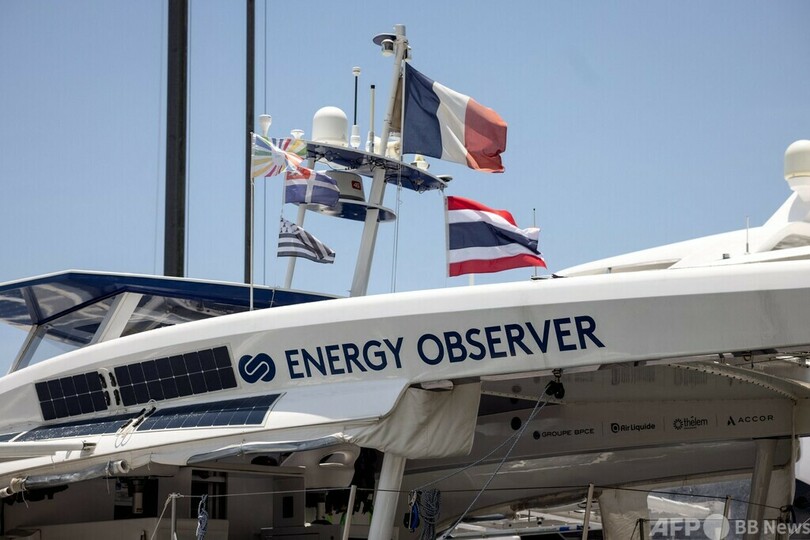 【5月15日 AFP】水素やその他の再生可能エネルギーだけで世界一周を目指す双胴船「エナジーオブザーバー(Energy Observer)」がこのほど、タイ・パタヤ(Pattaya)に寄港した。船はその後、タイ湾(Gulf of Thailand)の対岸フアヒン(Hua Hin)沖を航行した。