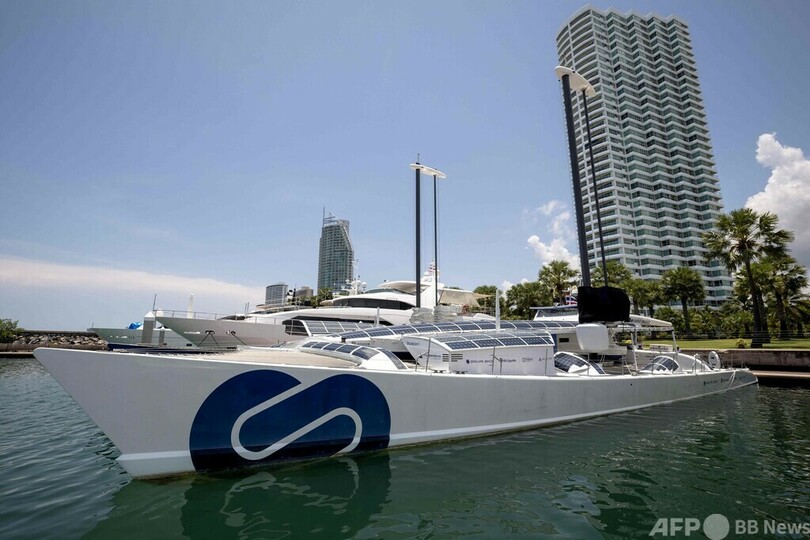 【5月15日 AFP】水素やその他の再生可能エネルギーだけで世界一周を目指す双胴船「エナジーオブザーバー(Energy Observer)」がこのほど、タイ・パタヤ(Pattaya)に寄港した。船はその後、タイ湾(Gulf of Thailand)の対岸フアヒン(Hua Hin)沖を航行した。